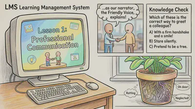 Walk into any Learning Management System and you will find the same thing. Slides with tasteful gradients. Videos where a disembodied voice narrates bullet points over stock footage of people shaking hands. Knowledge checks that ask you to recall what you just read thirty seconds ago. Everything is climate-controlled. The temperature is perfect. The lighting is soft. And the roots of every plant inside are rotting from neglect.