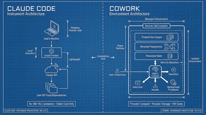 The question isn’t just about implementation. If they share a foundation, what decision point created such different trajectories? Why did CoWork choose to own the execution environment when Claude Code’s approach already worked? And what downstream consequences flow from that choice—not merely in cost or performance, but in the fundamental relationship between user and agent?